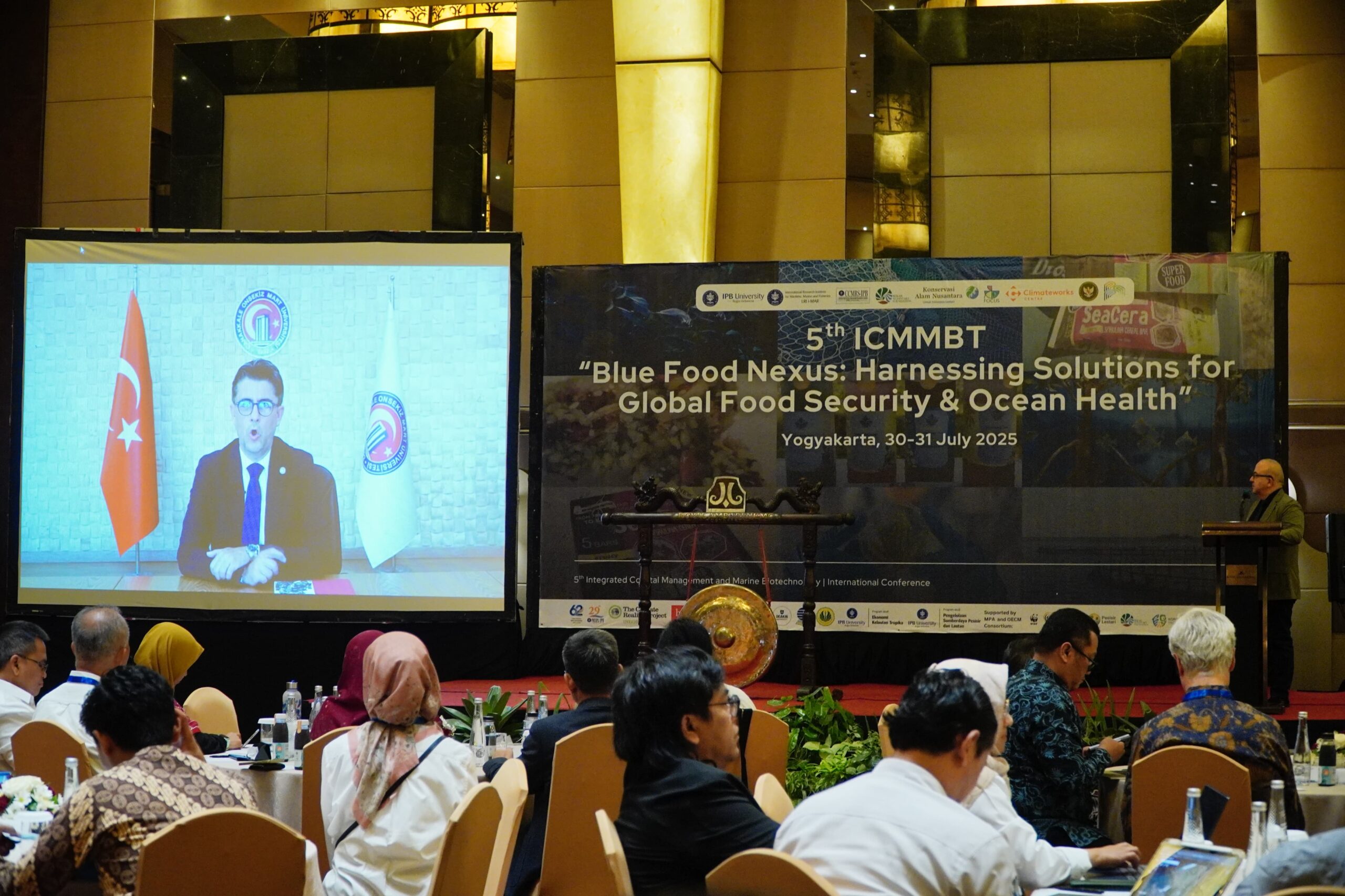 Yogyakarta, 30 Juli 2025 — Suasana Konferensi Internasional ke-5 tentang Integrated Coastal Management and Marine Biotechnology (ICMMBT 2025) semakin bermakna dengan kehadiran dan sambutan dari Prof. Dr. Ramazan Cuneyt Erenoglu, Rektor Çanakkale Onsekiz Mart University, Turki.