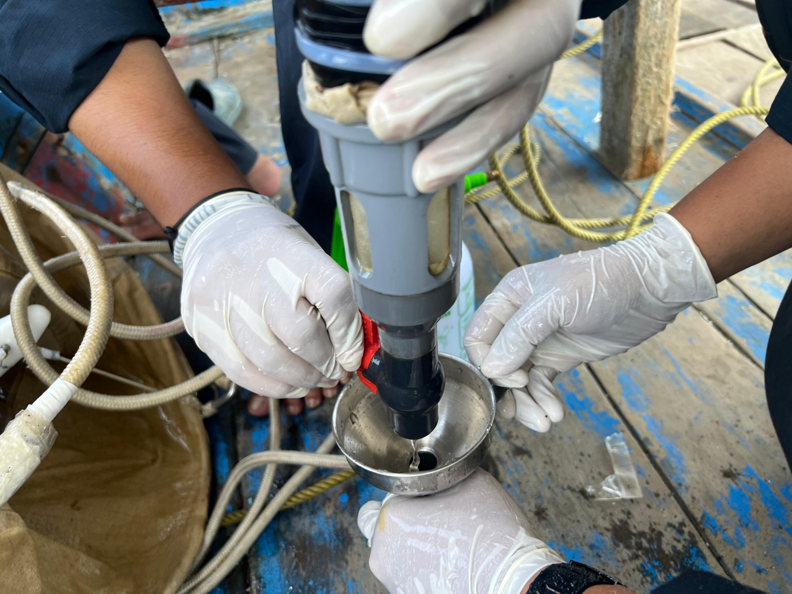 - pengambilan sampel sedimen dan air untuk dianalisis kandungan mikroplastik;