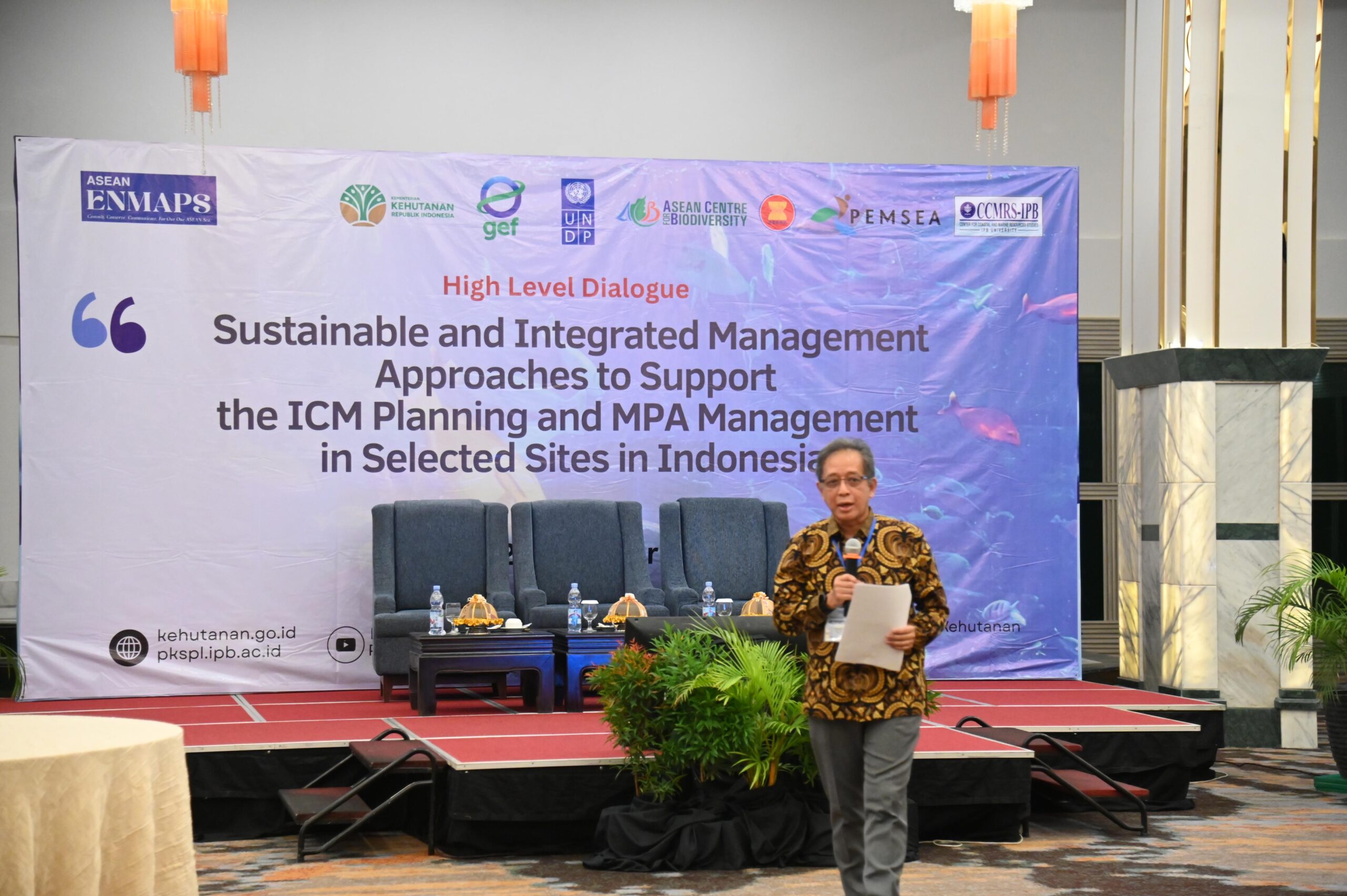 Dalam sambutan gubernur, Kadis Muh. Neng berterima kasih dan mengapresiasi project yang digagas bersama oleh ASEAN Centre for Biodiversity dan United Nations Development Programme (UNDP), guna memperkuat jaringan kawasan perlindungan laut dan pesisir serta meningkatkan kolaborasi pengelolaan antar institusi baik dari dalam maupun luar negeri.